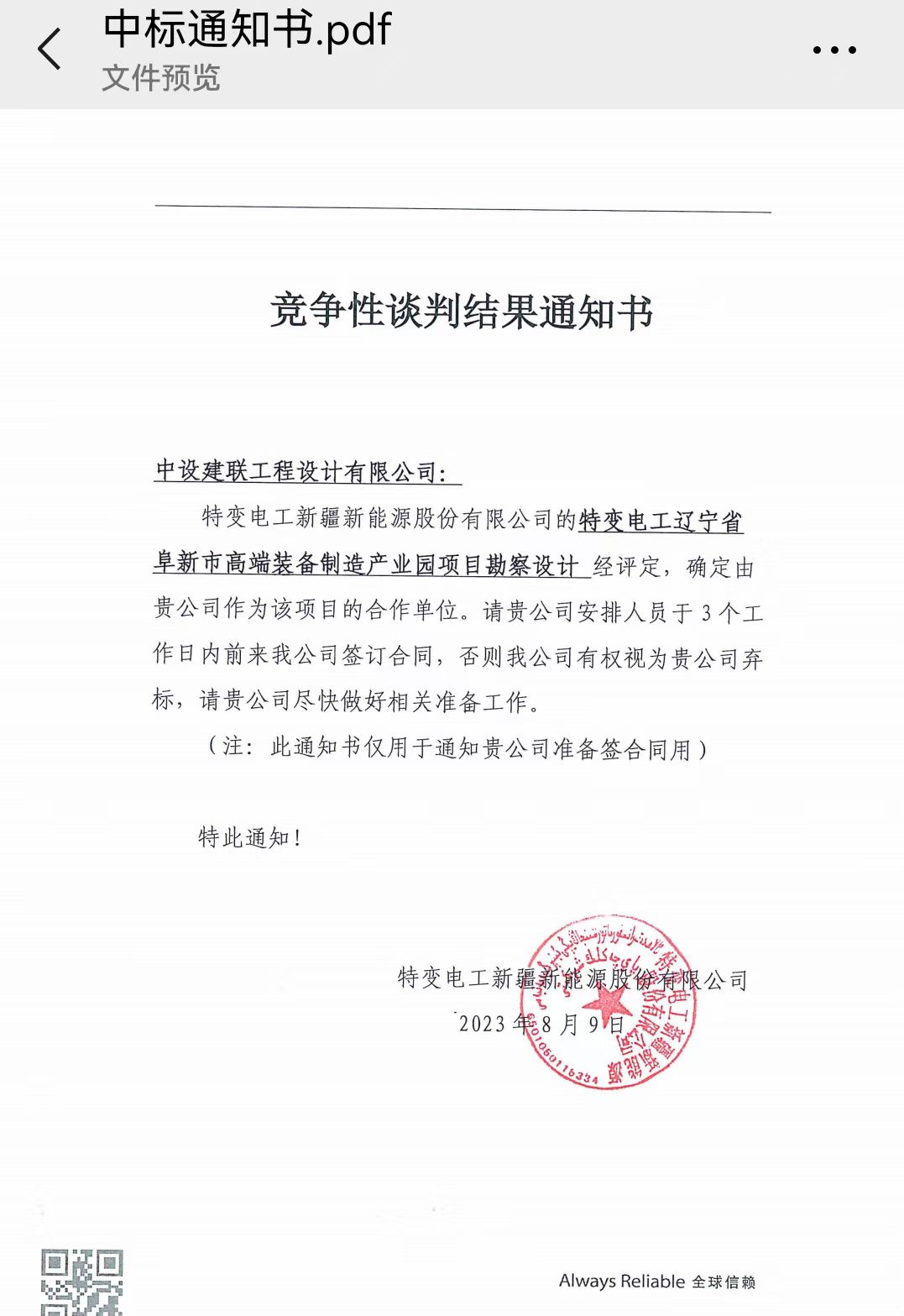 —中标“特变电”新能源产业园建设项目--阜新市